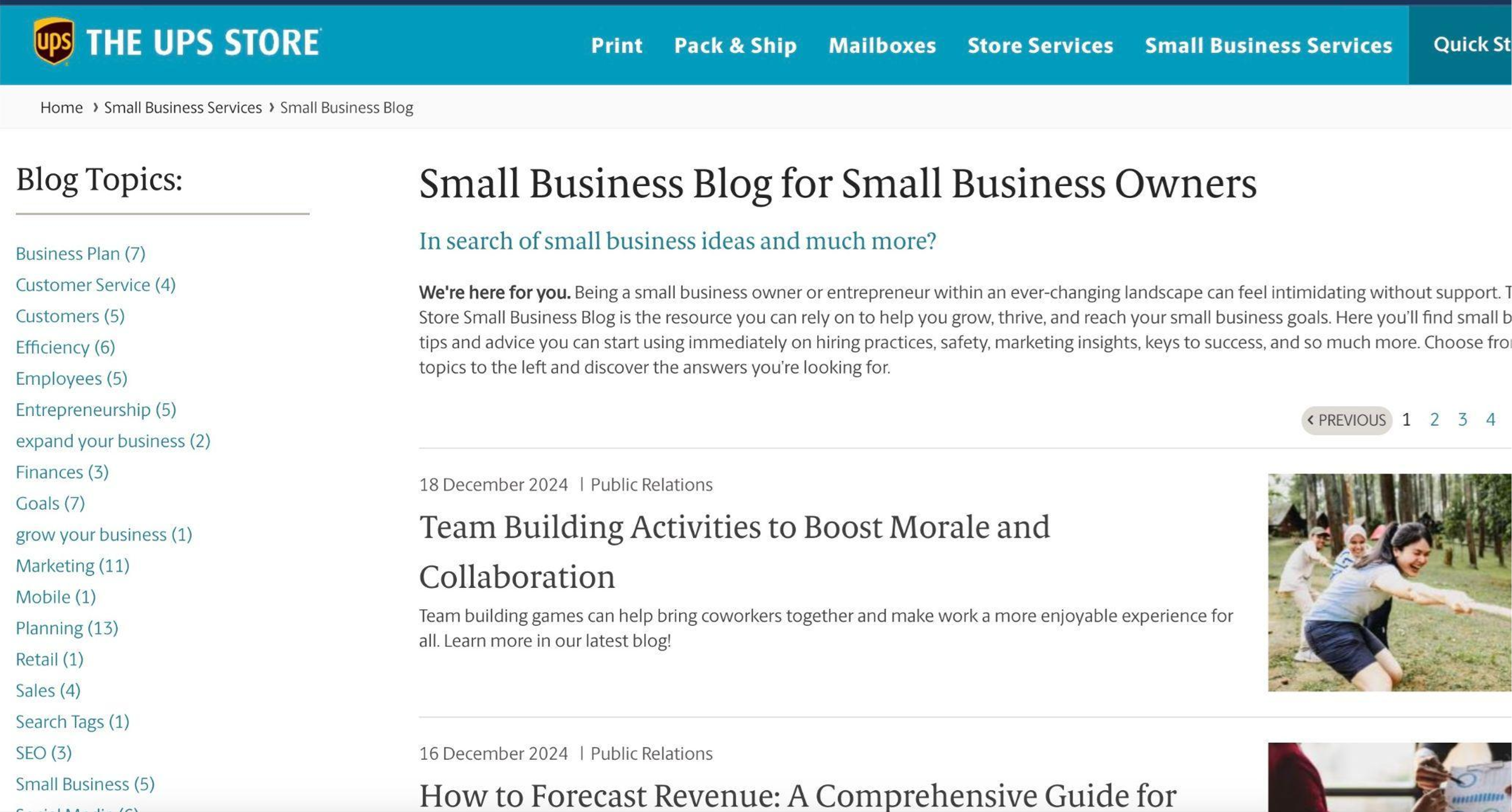 B2B marketing isn’t just for businesses looking to target large corporations. Shipping company UPS (United Parcel Service) focuses on building relationships with small business owners through its blog, which offers actionable content on relevant topics like logistics, shipping and delivery strategies, and navigating international tariffs: