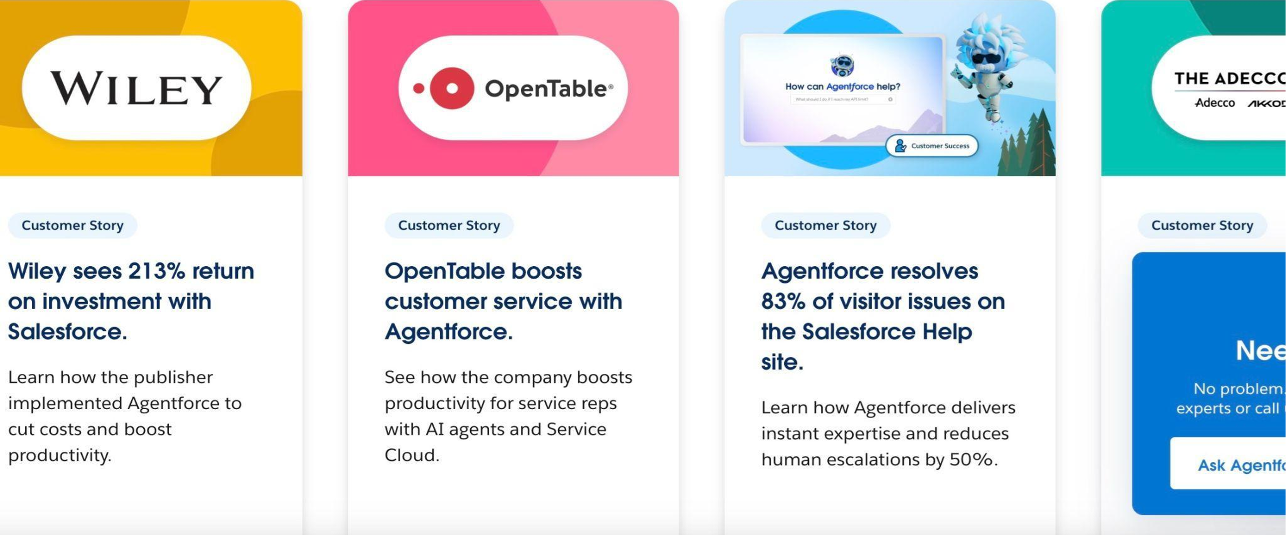 These stories, showcasing companies such as Wiley and Agentforce, depict how real businesses have achieved tangible results by using Salesforce’s tools. This results-driven content helps Salesforce build trust and credibility as well as demonstrate the value of the platform, and these tangible benefits will likely inspire other potential clients.