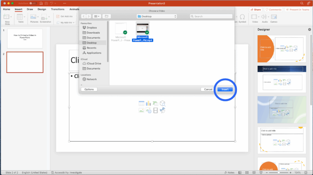 The location of your video will determine how you embed it in your PowerPoint presentation.
